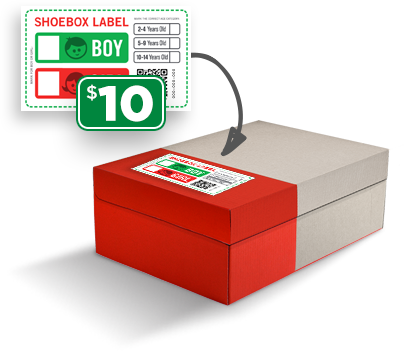 We will provide you with a label. Upon drop-off, indicate on your shoebox whether it was packed for a boy or girl and which age category: 2–4, 5–9, or 10–14.