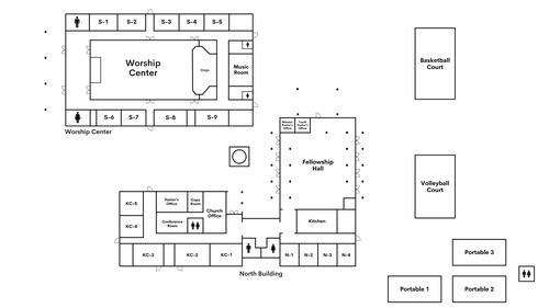 Calvary Baptist Church sits on 8 acres of land on Golf Course road in Perry, FL. Our campus consists of a Worship Center, Fellowship Hall, Kitchen, Offices, Conference Room, Kids Corner, & Portable classrooms. Our campus also has a basketball court, volleyball court, softball field & playground for the enjoyment of the children and youth. Below, you will find a graphic of our entire campus so you can better yourself with our grounds.